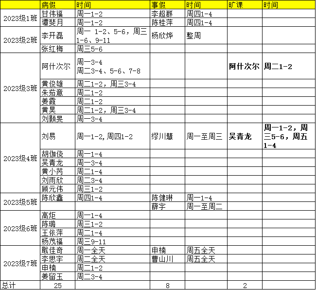 2025-2026-1第十六周学生考勤公示