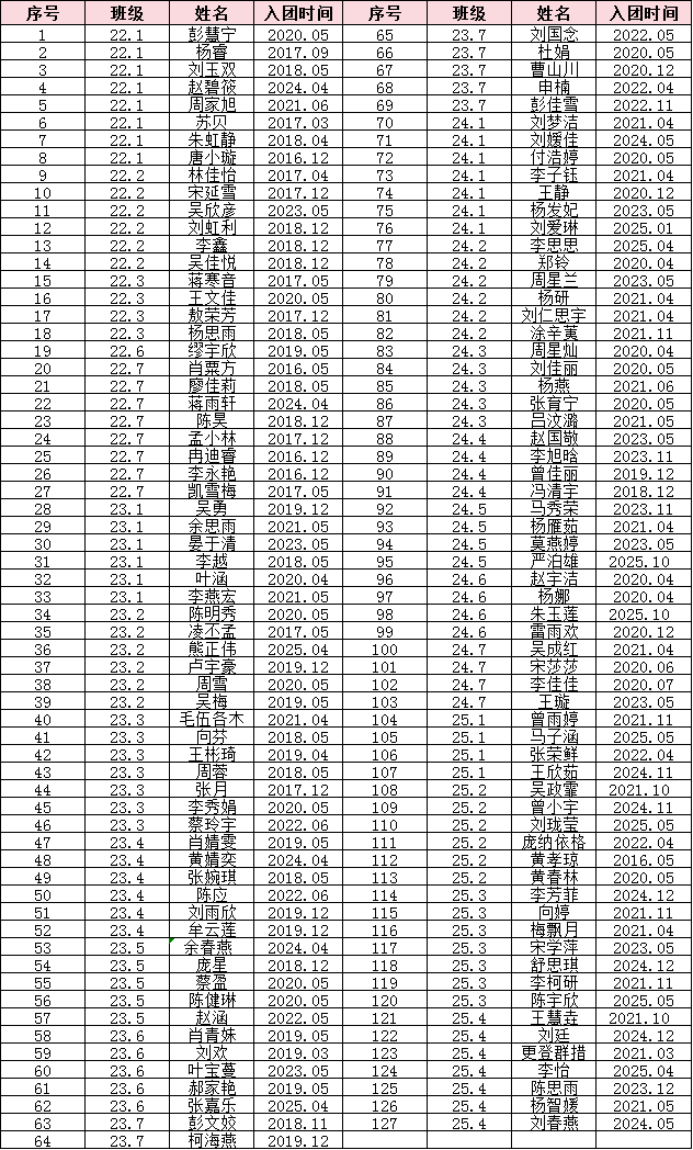 根据《新时代共青团员先进性评价指导大纲(试行)》、《中国共产主义青年团团员教育管理工作条例(试行)》、《中国共产主义青年团基层组织"三会两制一课"实施细则(试行)》等文件要求,在以支部为单位进行民主测评的基础上,支委会按照优秀、合格、基本合格、不合格四个等次。经外国语学院各团支部民主推荐,团总支民主测评、研究和审议,将彭慧宁等127名团员评议等级为优秀,马凯旋等421名团员评议等级为合格。