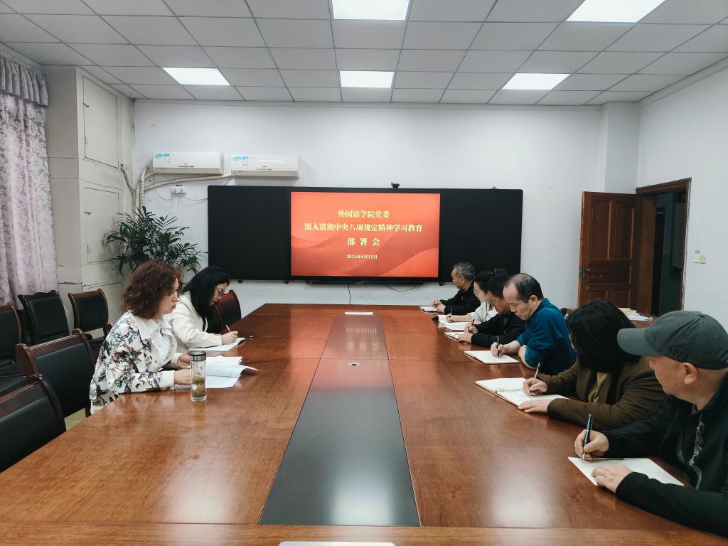 为深入贯彻中央八项规定精神,外国语学院党委迅速响应学校《关于在全校开展深入贯彻中央八项规定精神学习教育的实施方案》,召开专题部署会,全面部署学习教育工作。