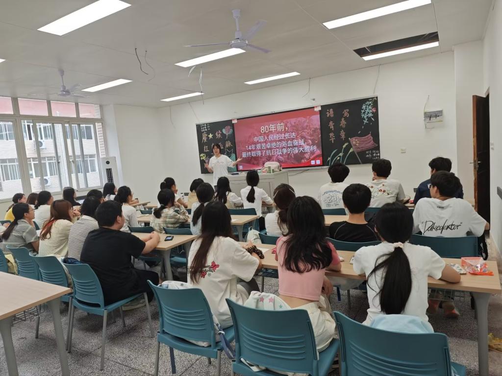 1.观史明志,感悟抗战精神:团课首先组织团员观看纪录片《我们在纪念什么》,通过影像资料帮助团员深入了解中国人民抗日战争的艰辛历程——既铭记英雄先烈为民族独立作出的牺牲奉献,也明晰国际反法西斯力量的支援作用,更深刻认识到抗日战争在世界反法西斯战争中的重要地位。影片结束后,团课引导团员从历史中提炼精神养分,进一步坚定“听党话、跟党走”的政治自觉,厚植爱国情怀,增强民族自豪感与自信心。