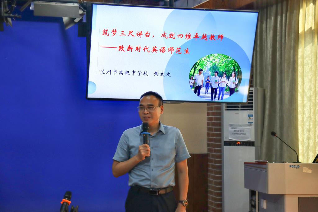 接着,黄校长做了题为“新时代英语师范生:筑梦三尺讲台,成就四维卓越教师”的专题讲座。黄校长结合丰富的一线教学与管理经验,系统阐释了新时代英语教师的核心素养与发展路径。为师范生从校园学习走向讲台实践提供了清晰指引,现场互动频繁,反响积极。