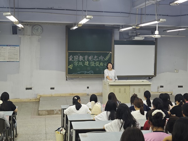 10月8日18:30,学院在博文楼开展了以“爱国教育明志向,学风建设促成长”为主题的班会,此次班会旨在增强学生爱国意识和社会责任感,同时强化了学生宿舍和校园交通安全管理,加强了安全教育与资助感恩教育。