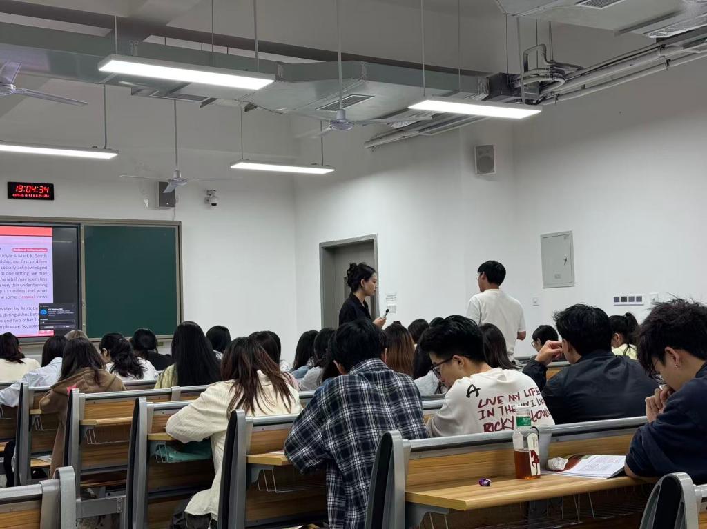 当晚 19 时,首场公开课在东校区B403教室开启,陈会灵老师为财经 2024级8班授课;19时55分,第二场公开课于东校区B110教室进行,罗云华老师为数学 2024级1班授课。两位青年教师备课扎实,课堂中充分运用现代教学技术与网络资源,教学设计兼具创新性与实用性,有效激发学生参与积极性,营造出互动性强、氛围活跃的课堂环境。课后交流环节,陈会灵、罗云华两位授课教师率先作教学反思,系统梳理本次授课的亮点与待改进之处。参与教师随后围绕课堂表现展开深入研讨,既肯定两位教师 “教学态度严谨、勇于创新实践、善用资源丰富课堂形式” 的优势,也客观指出 “课堂节奏把控不够精准” 等问题,并结合教学实际提出 “优化环节时长分配” 等针对性改进建议。交流尾声,全体教师聚焦学校 “数智赋能教学” 要求,围绕 “AI 工具在大学外语课堂的合理应用”、“课程思政元素的深度挖掘与融入” 两大核心议题展开探讨,分享实践经验、碰撞教学思路,形成多项可落地的教学优化方案,为后续教学改进提供方向。