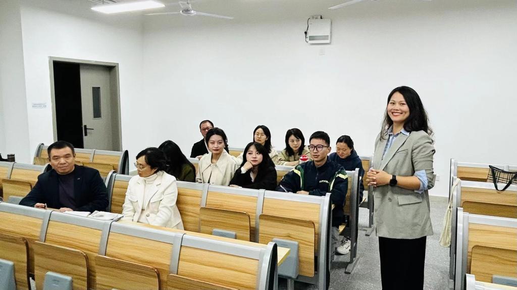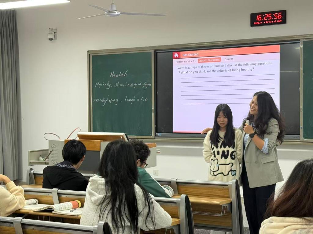 本次活动分为听课与交流两大环节。首先,陈娇老师以 “大学英语 3(非艺体)” 为课程内容,为数学2024级5班学生授课。据悉,该班级大部分学生未报考或通过大学英语四级考试,英语基础相对薄弱,课堂教学互动存在一定难度。授课过程中,陈娇老师展现出较强的课堂把控能力,精心设计辩论环节,引导学生围绕课堂主题展开思考与表达,有效助力学生思辨能力培养,为在场教师提供了生动的教学示范。
