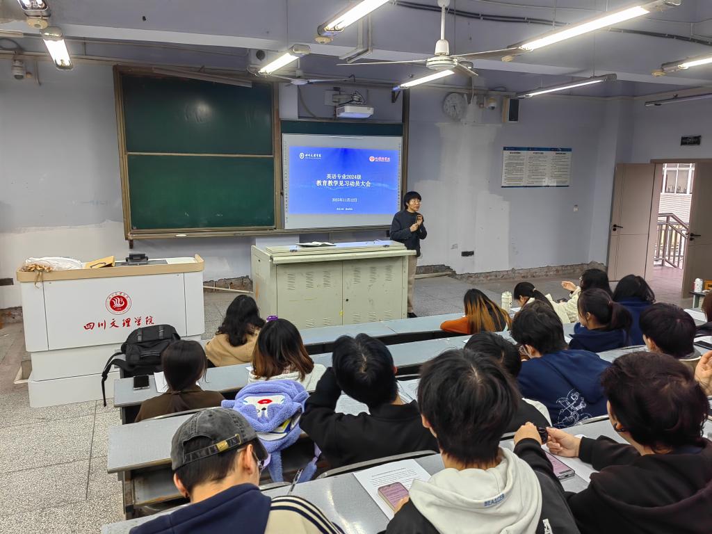 为确保教育教学见习工作有序开展、取得实效,2025年11月12日,英语教研室在博文楼312教室召开2024级英语专业教育教学见习动员大会。 2024级1至3班全体学生及带队老师参会。