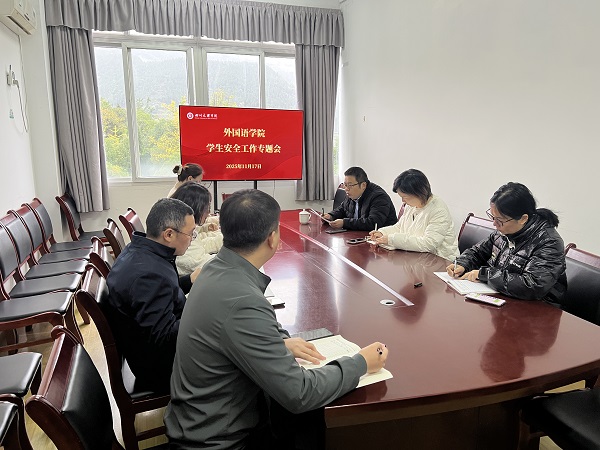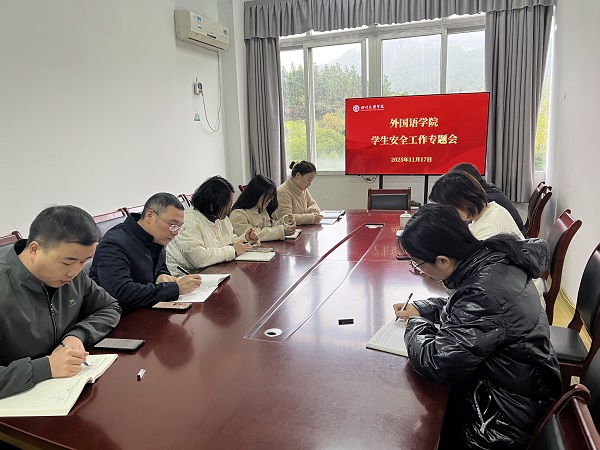 为深入贯彻落实学校学生安全工作专题会议精神,进一步加强学院学生安全教育与管理,筑牢校园安全防线,2025年11月17日上午10:00,外国语学院组织召开学生安全工作专题会议,党委书记毛玲、党委副书记董怀军及全体专兼职辅导员参会。会议围绕近期学校安全形势及下一阶段工作安排展开。