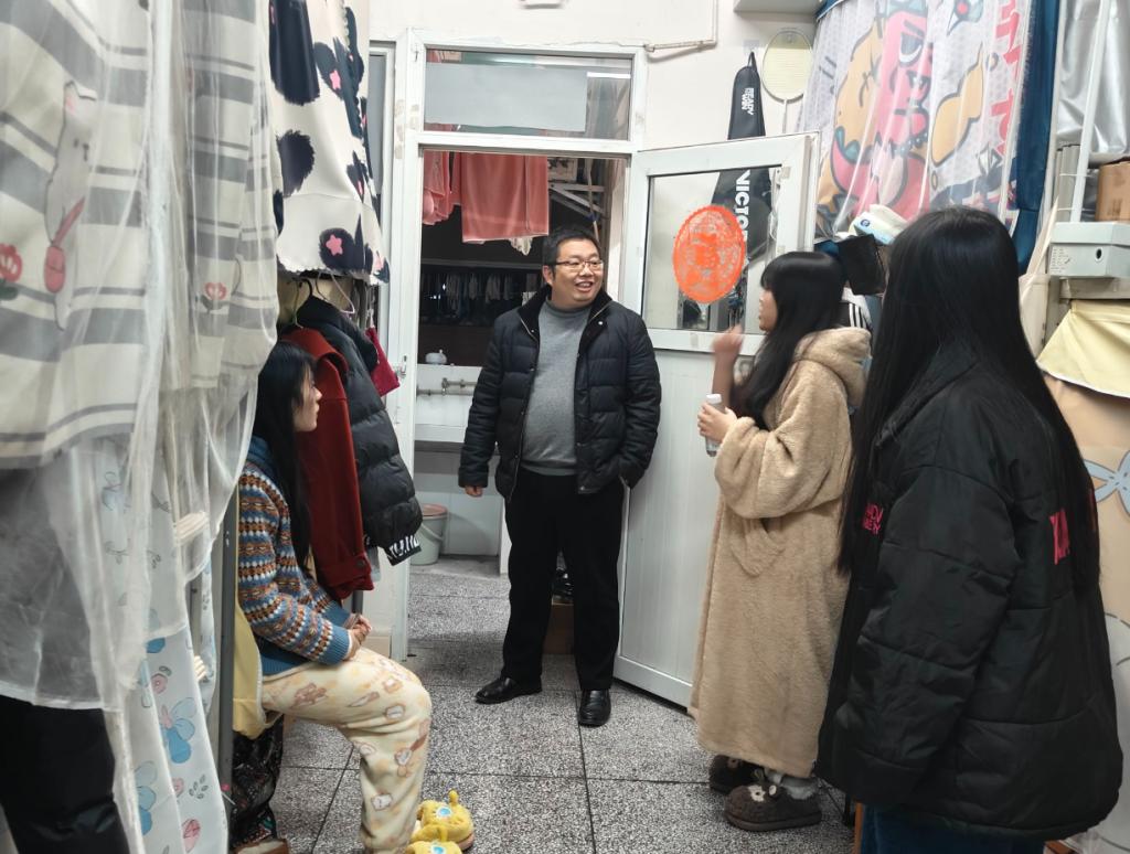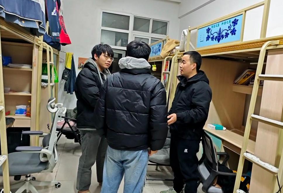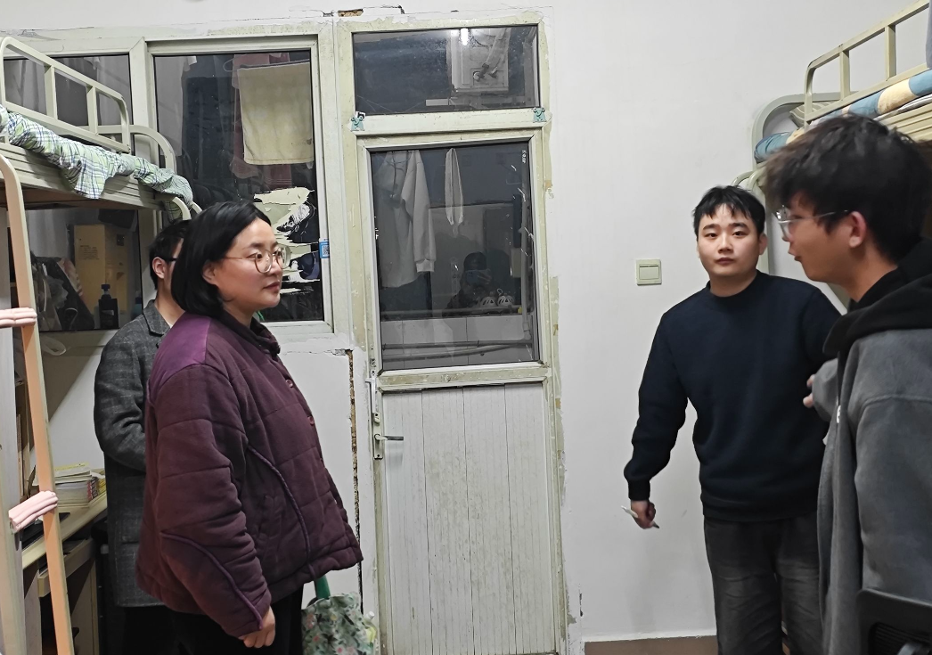为深入了解学生住宿环境与学习生活状态,强化师生沟通交流,筑牢校园安全稳定防线,11月26日晚,学院党委副书记董怀军带领全体专职辅导员、助管员深入学生宿舍,开展宿舍走访活动。