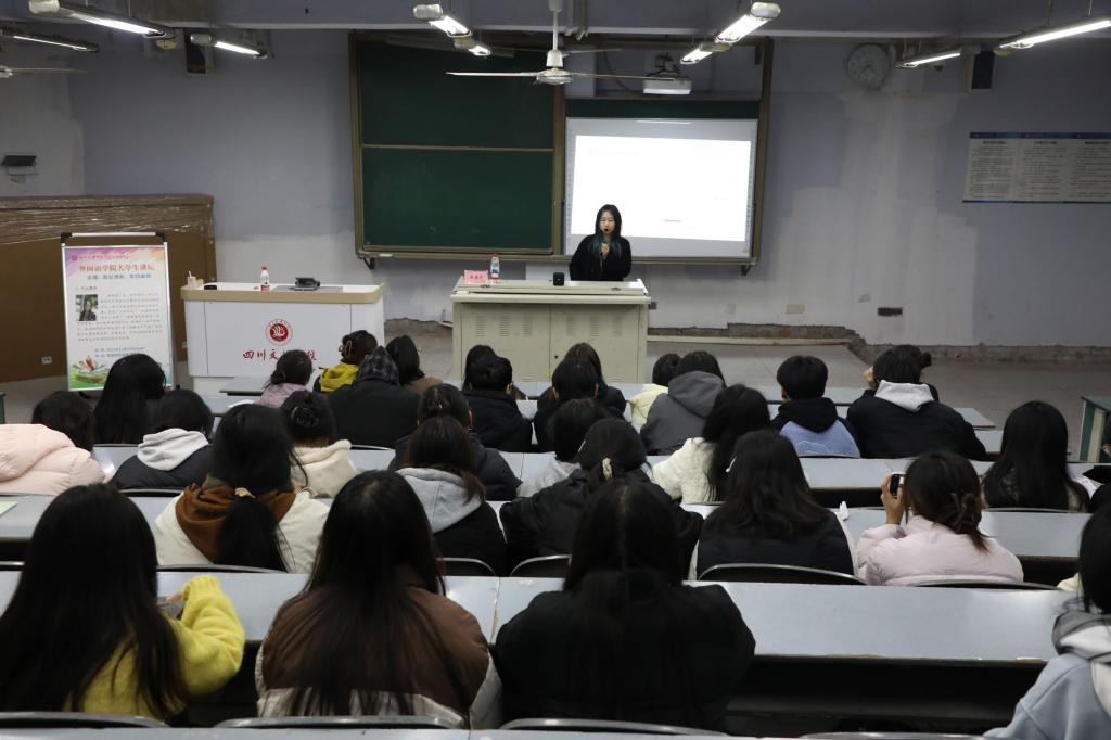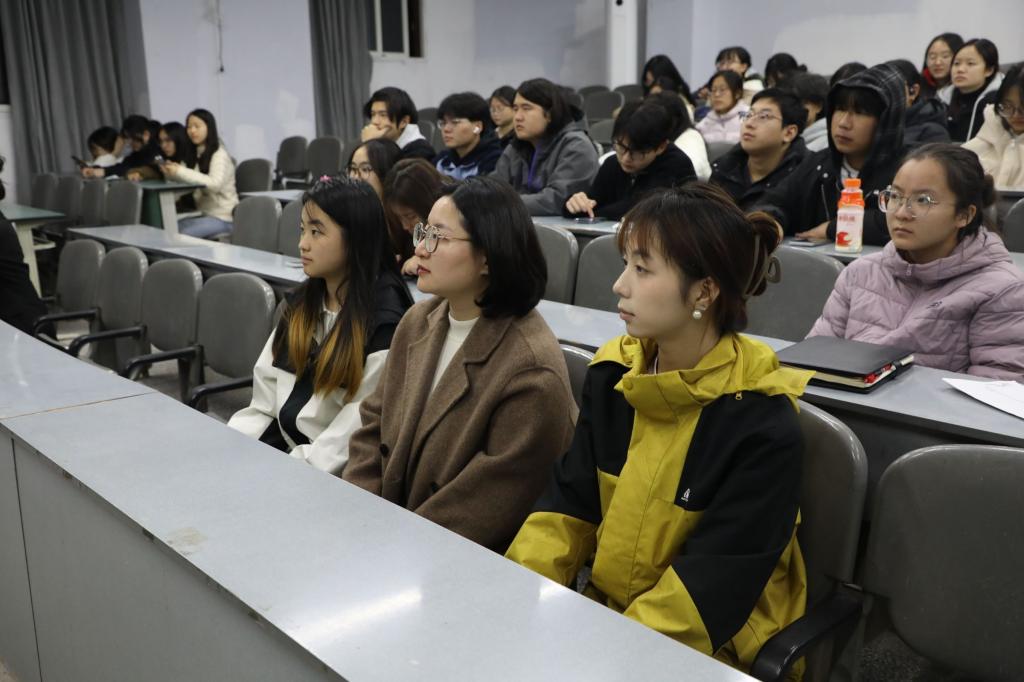 11月27日下午,外国语学院第118期大学生讲坛在博文楼312教室顺利落幕。本次讲坛以“高分领航,专四破局”为核心主题,特邀2023级英语专业四级考试(以下简称“专四”)92分高分得主黄婧奕同学担任主讲人,活动由王欣茹同学主持,学院学工办主任兼团总支书记叶柳老师及2024级全体同学共同参与。