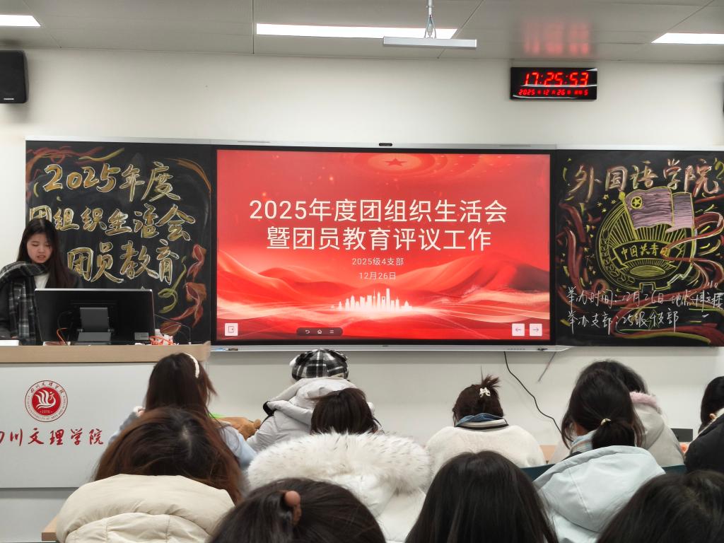 为深入贯彻从严治团要求,外国语学院团总支于12月26日组织各支部召开2025年专题组织生活会暨团员教育评议会。活动在团总支负责人及带班辅导员指导下,围绕“强化自我认知、激发支部活力”主线,将先进性评价与教育评议紧密结合,取得扎实成效。