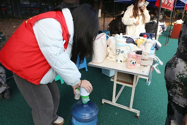针对新生军训期间的实际需求,学院组织90名志愿者开展军训志愿服务活动。志愿者们提前筹备饮用水、常用药品等物资,在训练场地周边设立服务点,为军训新生提供饮水补给、伤病护理等帮助;休息时段主动与新生交流,分享校园生活经验与学习心得,用关怀与鼓励帮助新生快速适应军训节奏、融入校园生活。