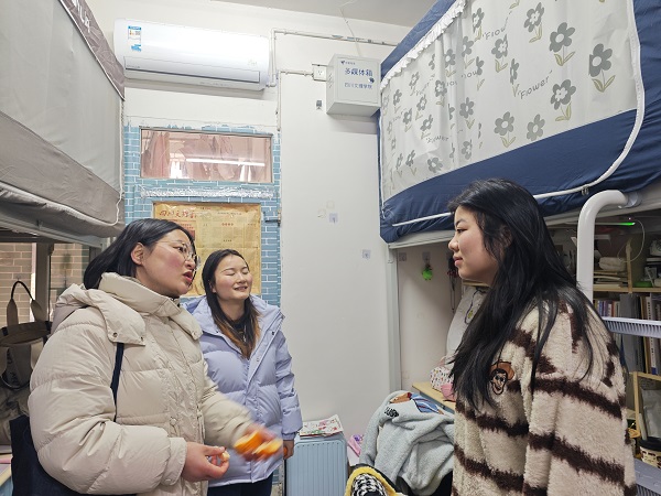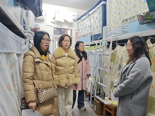 为精准掌握学生离校情况,做好在校学生管理和教育,2026年1月19日上午,外国语学院党委书记毛玲率领全体专兼职辅导员一行走访学生寝室,看望留校学生,检查门窗用电情况,叮嘱安全注意事项。