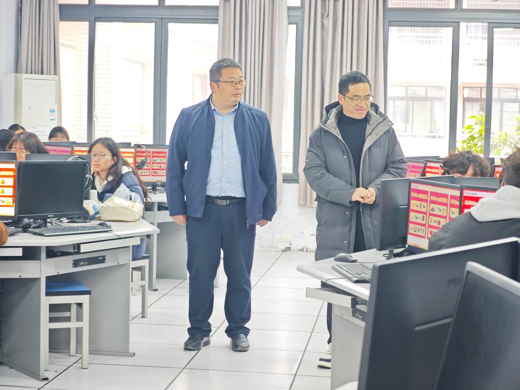 2026年3月9日,新学期开学首日,外国语学院领导班子成员分为三组,深入教学一线,走进各智慧教室与语言实验室等教学场所,开展教学专项检查。检查组重点查看教师到岗情况、备课准备、课堂组织、学生出勤及教学设备运行等情况,随堂听取课程,细致观察师生状态与课堂效果。