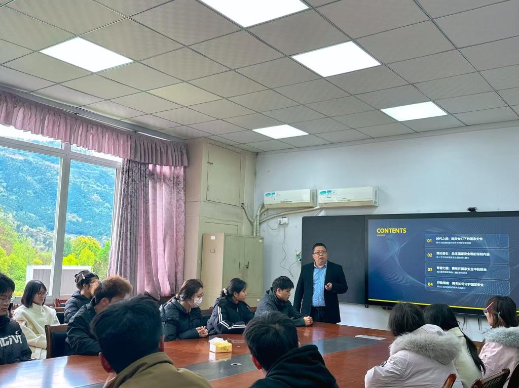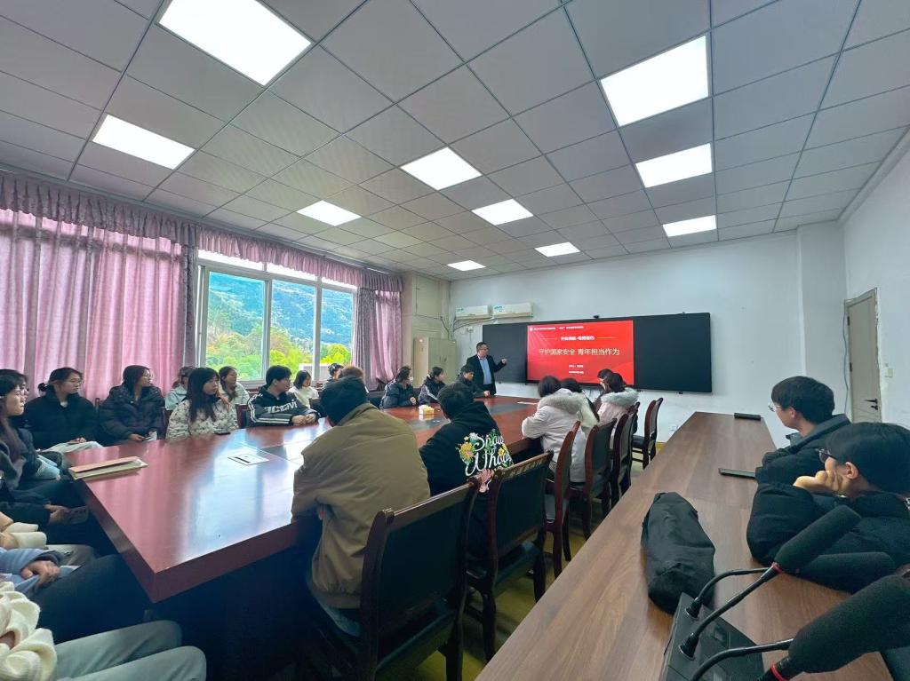 为切实增强学生国家安全意识,筑牢校园安全防线,引导青年学子主动肩负起维护国家安全的责任与使命,3 月 18 日下午 3 点,外国语学院在博文楼 304 会议室开展 “守护国家安全・青年担当作为” 主题讲座。本次活动作为学院 “一站式” 学生社区活动,由学院党委副书记董怀军主讲,2023 级 1—3 班学生参加学习。