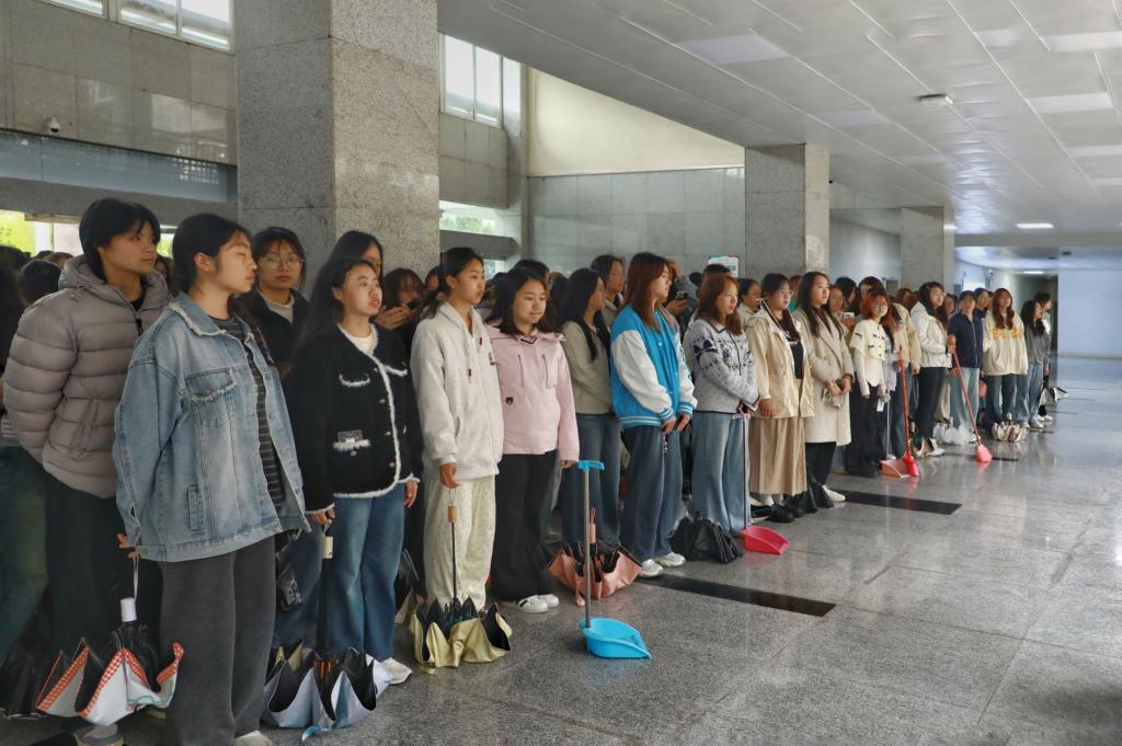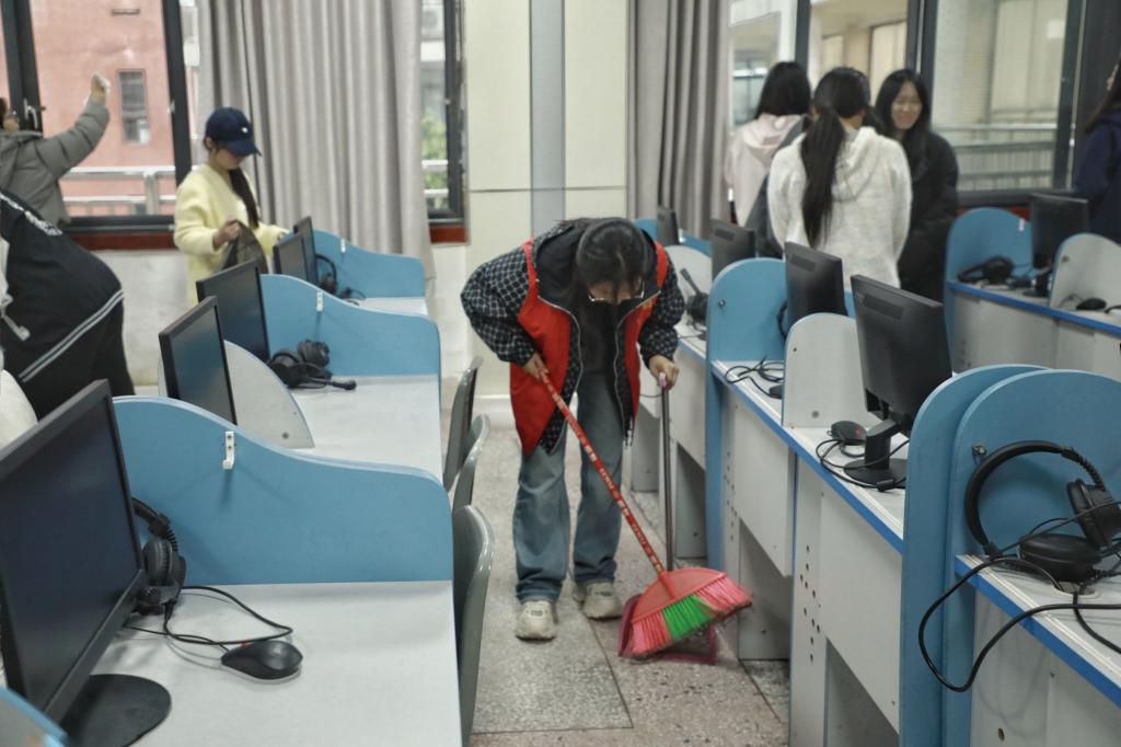 在理论学习的基础上,学院组织团员青年将节水护水理念转化为实际行动,于当日下午开展图书楼清扫实践活动。团员们在博文楼门口集合后,按照分工前往图书楼A、B、C区11个指定教室进行清扫,在劳动中践行“奉献、友爱、互助、进步”的志愿精神。各支部认真协作,有序完成清扫任务,并在分享环节中畅谈劳动感悟,表示要将雷锋精神融入日常,以实际行动服务校园、奉献社会。