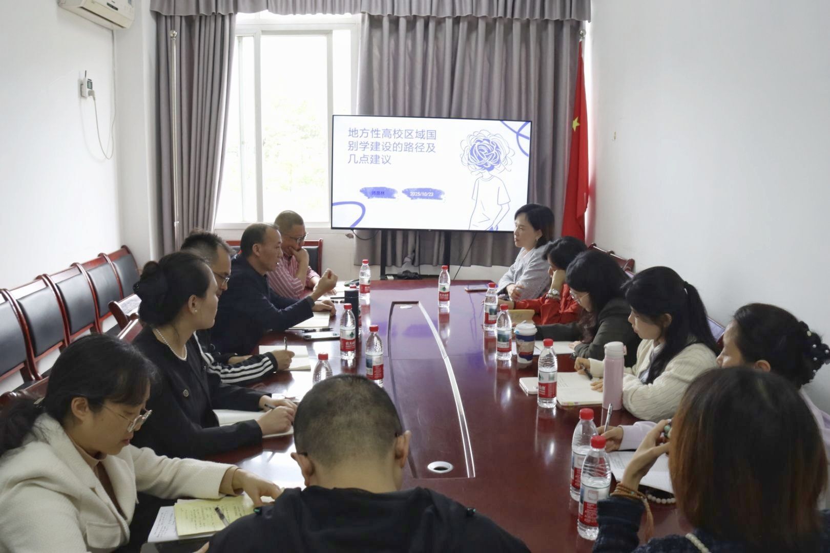 为活跃学术氛围、促进学术思想碰撞融合,拓宽教师学术视野,推动科研创新团队建设,10月23日下午,四川文理学院外国语学院在莲湖校区博文楼317会室成功举办第二十四期塔石人才特区学术沙龙。本次沙龙以“地方性高校国别区域学建设的路径及几点建议”为题,由外国语学院副院长李显文教授主持,师嘉林博士担任主讲人,陈前博士、吴丹博士、付裕淇博士作为与谈人,学院党委书记毛玲、部分教授、博士参加了此次学术沙龙活动。