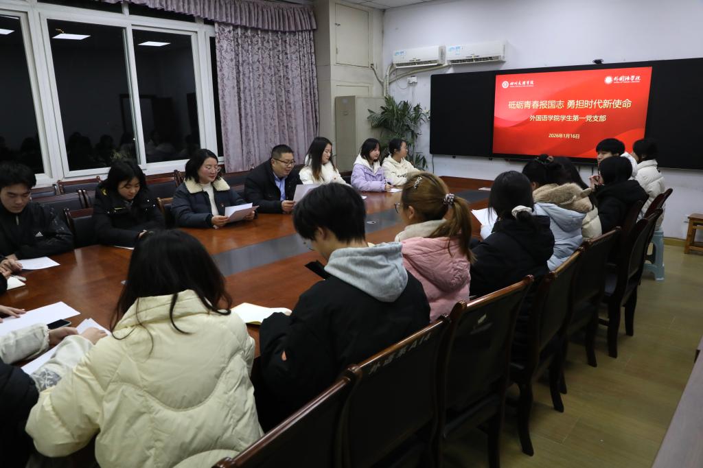 为深入学习贯彻上级党组织部署要求,强化学生党员的理论武装与纪律意识,2026年1月16日,外国语学院学生第一党支部与学生第二党支部在博文楼304会议室联合开展主题党日活动。活动以“砥砺青春报国志·勇担时代新使命”为主题,通过集中学习、案例研讨与心得交流等形式,引导学生党员坚定理想信念,明确责任担当。