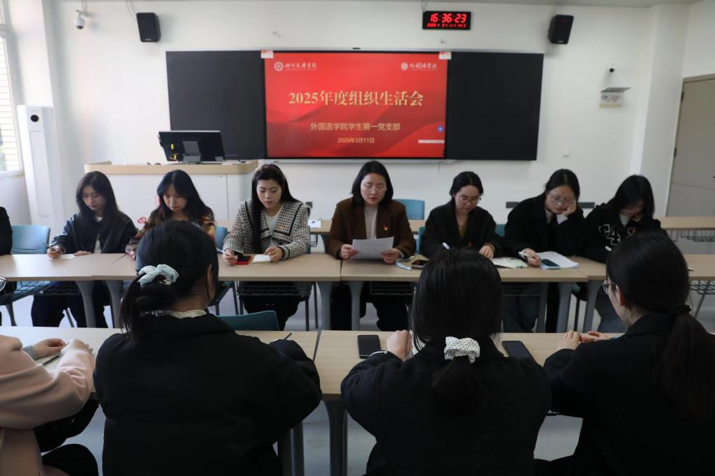 3月11日下午,外国语学院学生第一党支部在博文楼322教室召开2025年度组织生活会。会议由党支部书记叶柳主持,支部全体党员参加,学院党委联系领导郑静同志列席指导。