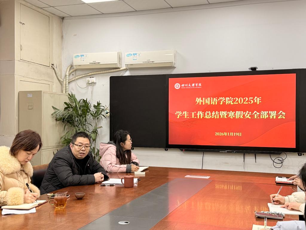 为全面复盘2025年度学生工作成效,精准部署寒假期间安全管理及后续学工重点任务,进一步凝聚学工队伍合力,1月19日9点整,我院召开2025年学生工作总结暨寒假安全部署会。院党委书记毛玲、党委副书记董怀军及全体专兼职辅导员参加会议,会议由董怀军书记主持。