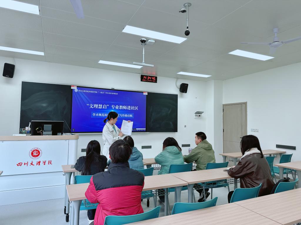 3月24日,我院“文理慧启”专业教师进社区系列活动以“学术规范筑根基,论文写作助启航”为主题举办论文写作与规范指导沙龙,由谢江维博士主讲,部分大一大二学生参与学习。