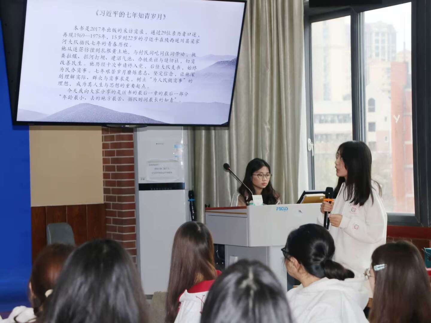 本次分享会开始之前,辅导员刘欣蕾结合自身经历分享感悟,她谈到大学时期便品读《习近平的七年知青岁月》,书中青年习近平“自找苦吃”的奋斗故事与扎根基层的为民初心,给她留下了深刻印象,也一直激励着自己在教育岗位上践行育人使命。她鼓励在场同学,要以青年习近平为榜样,从知青岁月的奋斗故事中汲取奋进力量,在大学时光里深耕专业知识、锤炼担当本领,主动参与实践、践行群众情怀,让青春在实干与奉献中绽放光彩。