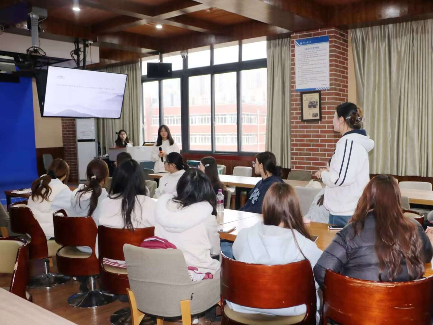 在分享过程中,徐欣结合书中内容抛出互动问题,引发在场同学的热烈思考与积极回应。随后,徐欣从吃苦耐劳、坚韧不拔、勇于担当的意志磨砺,以及关心群众、真诚相待、心怀仁爱的为民情怀两大方面,提炼出青年习近平在七年知青岁月中展现的宝贵精神品质,并从个人成长与青年使命出发,分享了该书带来的现实启示,号召同学们坚定理想信念、坚持勤学善思、勇于躬身实践,将个人发展融入国家大局。