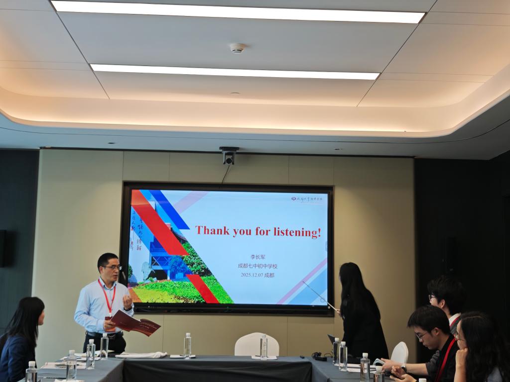 12月7日上午是四川师范大学外国语学院外语教育发展专题论坛,南京大学杨金才教授的“英语社会与文化”课程思政教学、四川师大曹曦颖院长的国家级一流课程“师范英语演讲与辩论”的课程思政实践进路、以及四川师大严静副教授的课程示范课展示,共同构建外语教育“培根铸魂”的生动范式。刘彦仕受邀主持外语教育研究平行分论坛一,他清晰阐明分论坛“外语教育研究与思政育人融合路径”的核心定位,并以严谨专业的主持风格把控研讨节奏,引导参会嘉宾有序发言。研讨现场,来自初中学段的教师代表分享了课程思政教学实践案例,老师们的教学实践各有特色,精彩纷呈。